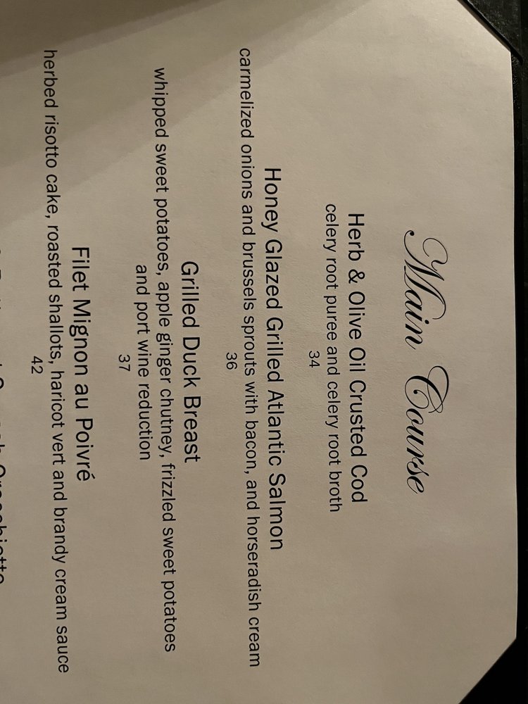 Tewksbury Inn, located in Oldwick, NJ, offers a New American menu with a cozy ambiance and friendly staff. Known for their variety of vegan and vegetarian options, this restaurant is wheelchair accessible and provides a range of amenities including free Wi-Fi, a full bar, and outdoor seating. A customer favorite is the parsley crusted cod and the 15oz ribeye cooked to perfection. The apple crisp dessert is a must-try. The restaurant's rustic charm with hardwood floors and exposed beam ceilings adds to the dining experience. Despite the lack of cellular coverage inside, guest WiFi is available. Overall, Tewksbury Inn provides a delightful dining experience with delicious dishes and excellent service.