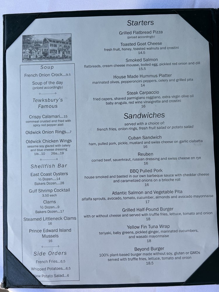 Tewksbury Inn Menu (Update 2025)